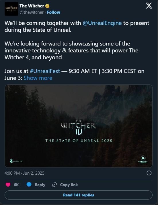Zaklínač 4 se ukáže na State of Unreal 2025